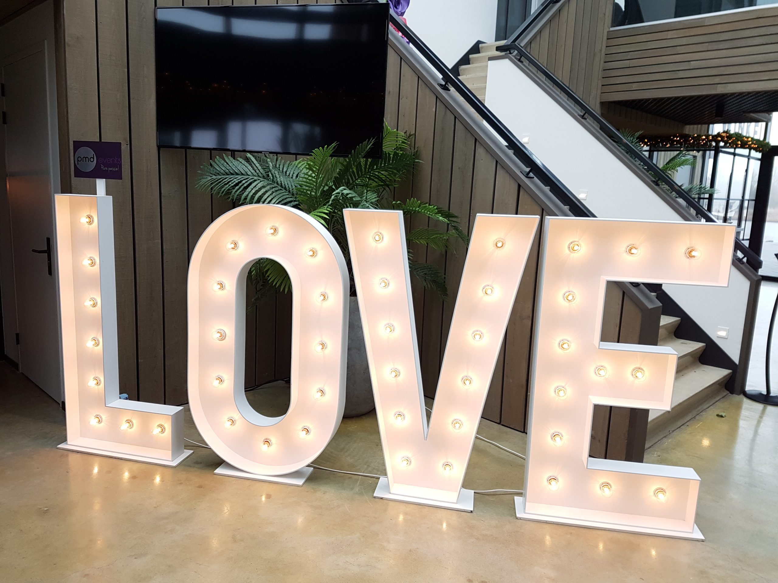 Onze verlichte LOVE letters zijn niet meer weg te denken bij bruiloften. De letters vormen een mooie decoratie tijdens de ceremonie of zijn ze een gave onderdeel bij een fotobooth. Maar ook op een bedrijfs-, netwerk- of andere events worden ze ook tijdens het borrelen graag gezien!